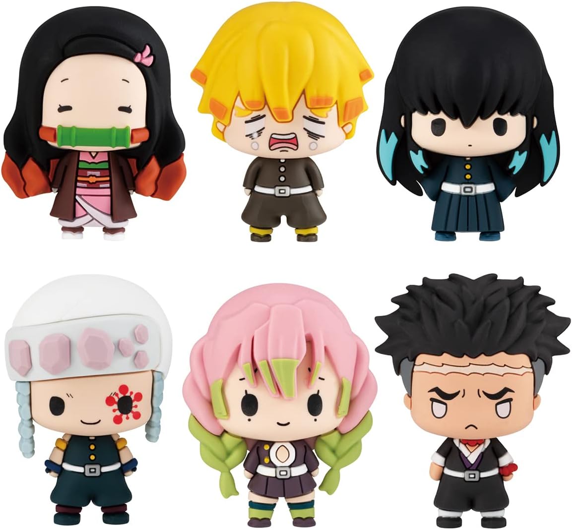 Chokorin Mascots of the Demon Slayer characters! You can collect them, go out together, take pictures, and enjoy in various situations. They can stand on thier own with a dedicated stand in each box. This Volume 3 is a complete set version and includes: Nezuko, Zenitsu, Tengen Uzui, Muichiro Tokito, Mitsuri Kanroji, Gyomei Himejima.