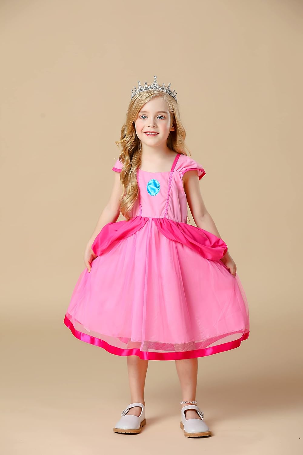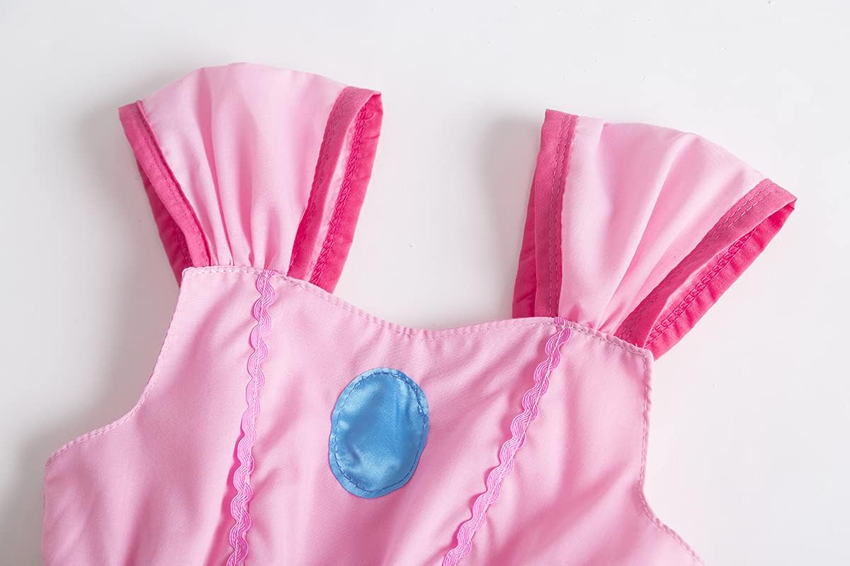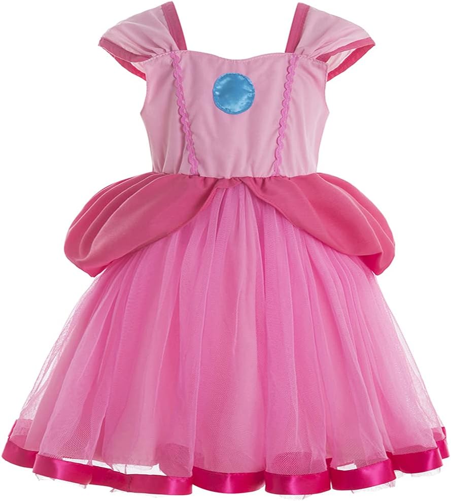 Vestido de Disfraz de Princesa Peach Deluxe para Niñas, Vestido de Disfraz de Princesa Daisy para Niñas, Vestido de Fiesta de Halloween y Cumpleaños para Niñas (Blanco, 5 Años)