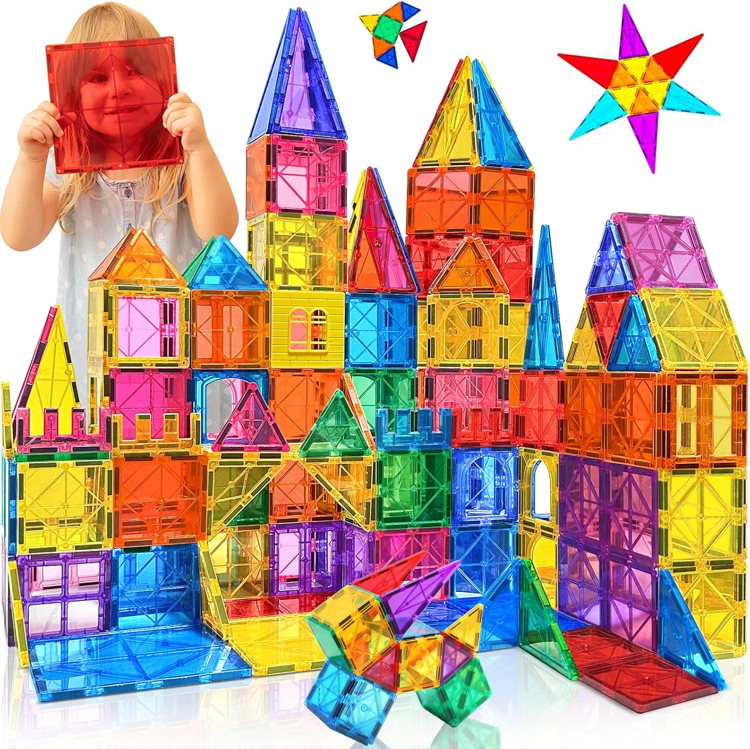 【STEM Montessori and Sensory Toys】These Magnetic tiles for kids ages 4-8 are more than just building blocks. They are educational tools that grow with your child, enhancing their STEM-related skills like pattern recognition, magnetic principles, and problem-solving. Additionally, they serve as excellent sensory toys, stem toys, building toys and preschool toys, providing a rich sensory experience that aids in cognitive development.