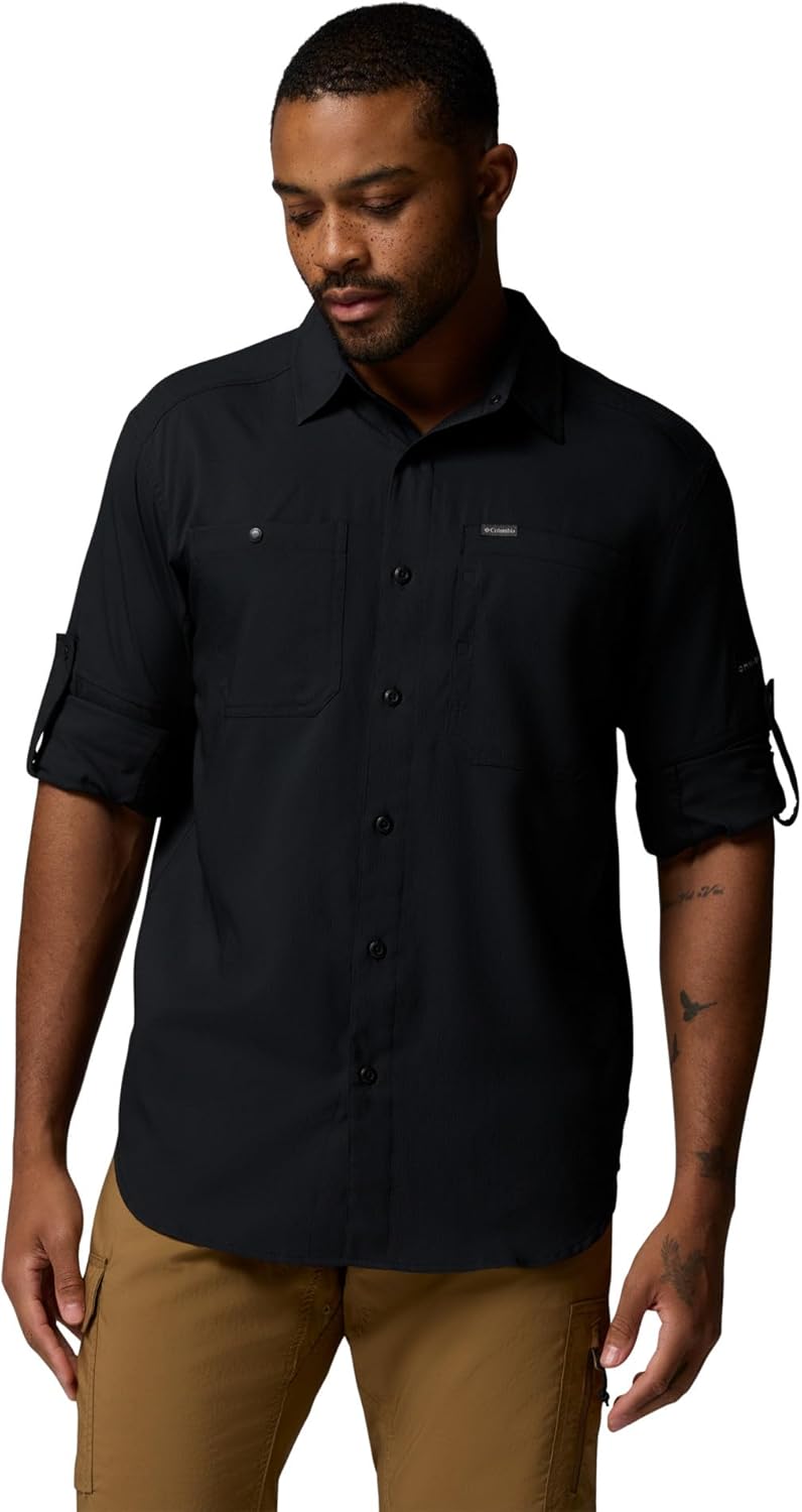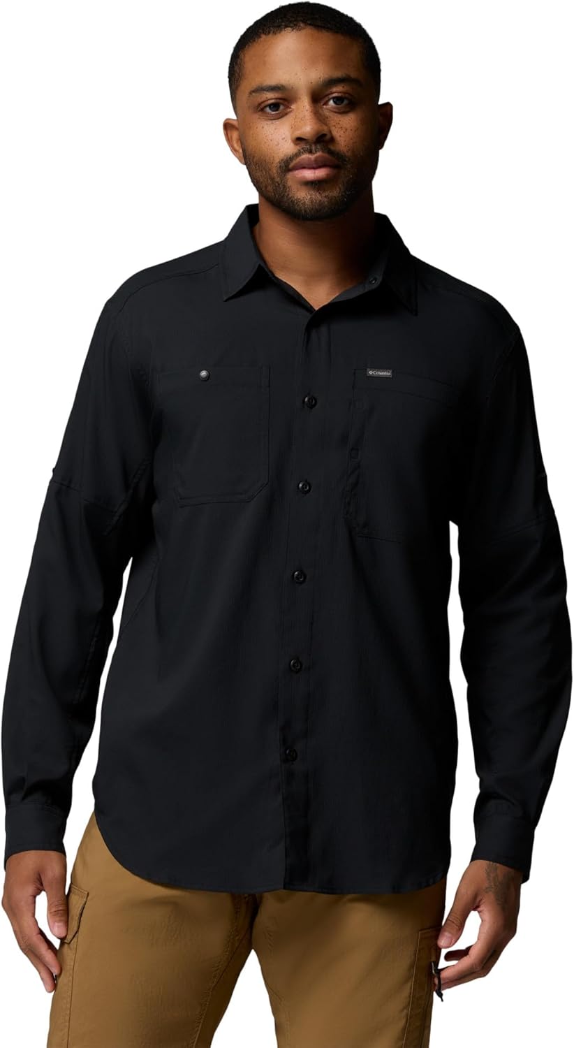 Designed to trek incredibly lightly, this vented button-down is made of 100% recycled polyester—so it holds its own against snagged branches and brambles. Omni-Shade UPF 50 sun protection provides coverage when there isn't a cloud in the sky. For non-stop comfort, Omni-Wick technology wicks perspiration and helps this shirt dry quickly, plus antimicrobial treatment keeps it fresh mile after mile. Features you'll love include roll-up sleeves, dual chest pockets, and a classic shirttail hemline. Columbia offers this long sleeve shirt in multiple colors and sizes. Extended sizing available. Regular Fit.
