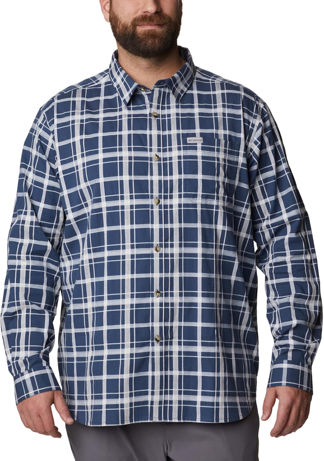 Columbia offers this men’s long sleeve shirt in multiple colors, patterns, and sizes. Available in extended sizing. Regular Fit. To ensure the size you choose is right, utilize our sizing chart and the following measurement instructions: For the sleeves, start at the center back of your neck and measure across the shoulder and down to the sleeve. If you come up with a partial number, round up to the next even number. For the chest, measure at the fullest part of the chest, under the armpits and over the shoulder blades, keeping the tape measure firm and level.