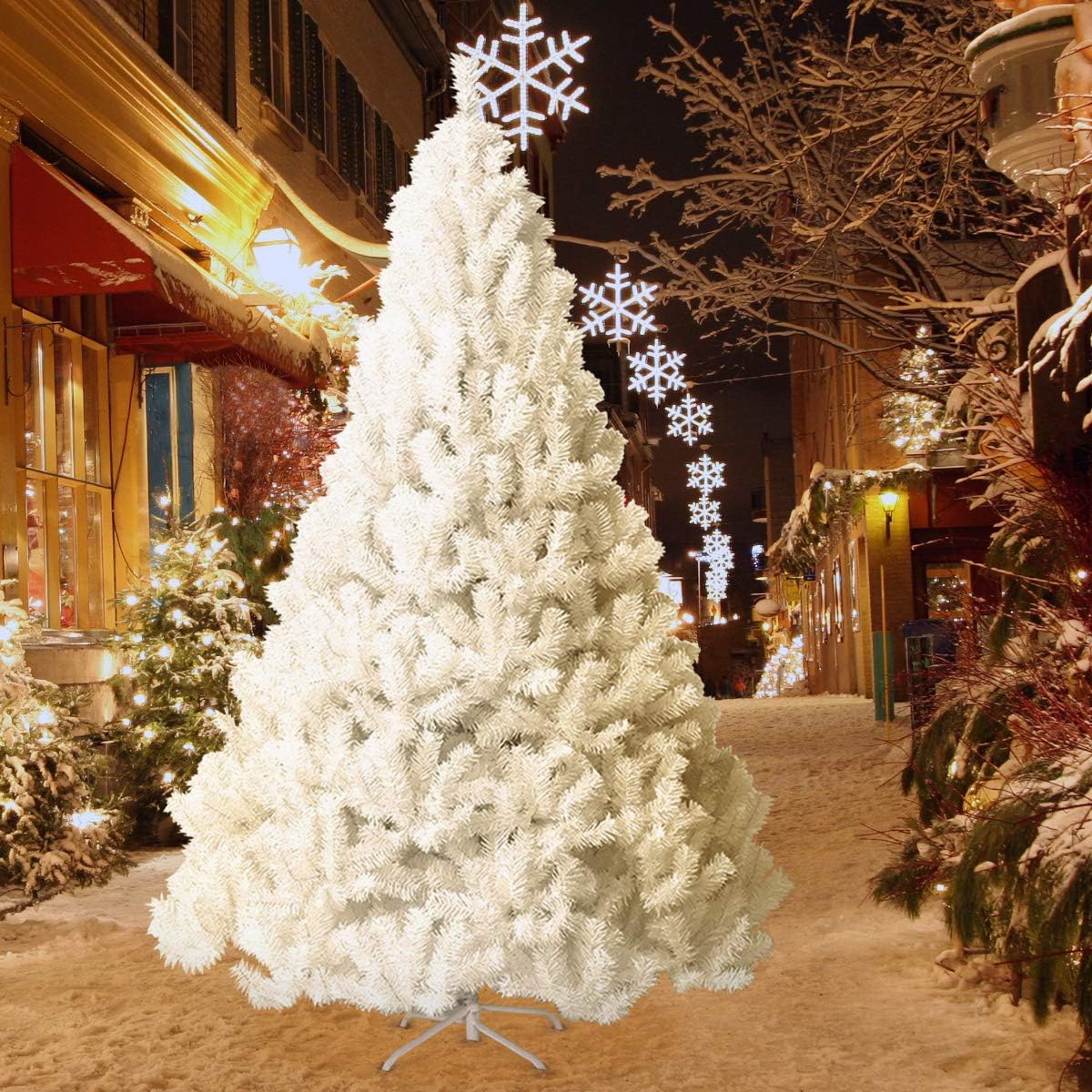 Árbol de Navidad Artificial Blanco de 5ft/6ft/7ft/8ft, Fácil de Montar, Base de Metal, Árbol de Navidad Falso para Decoración de Oficina, Fiesta, Interior y Exterior, Vacaciones, 8 ft