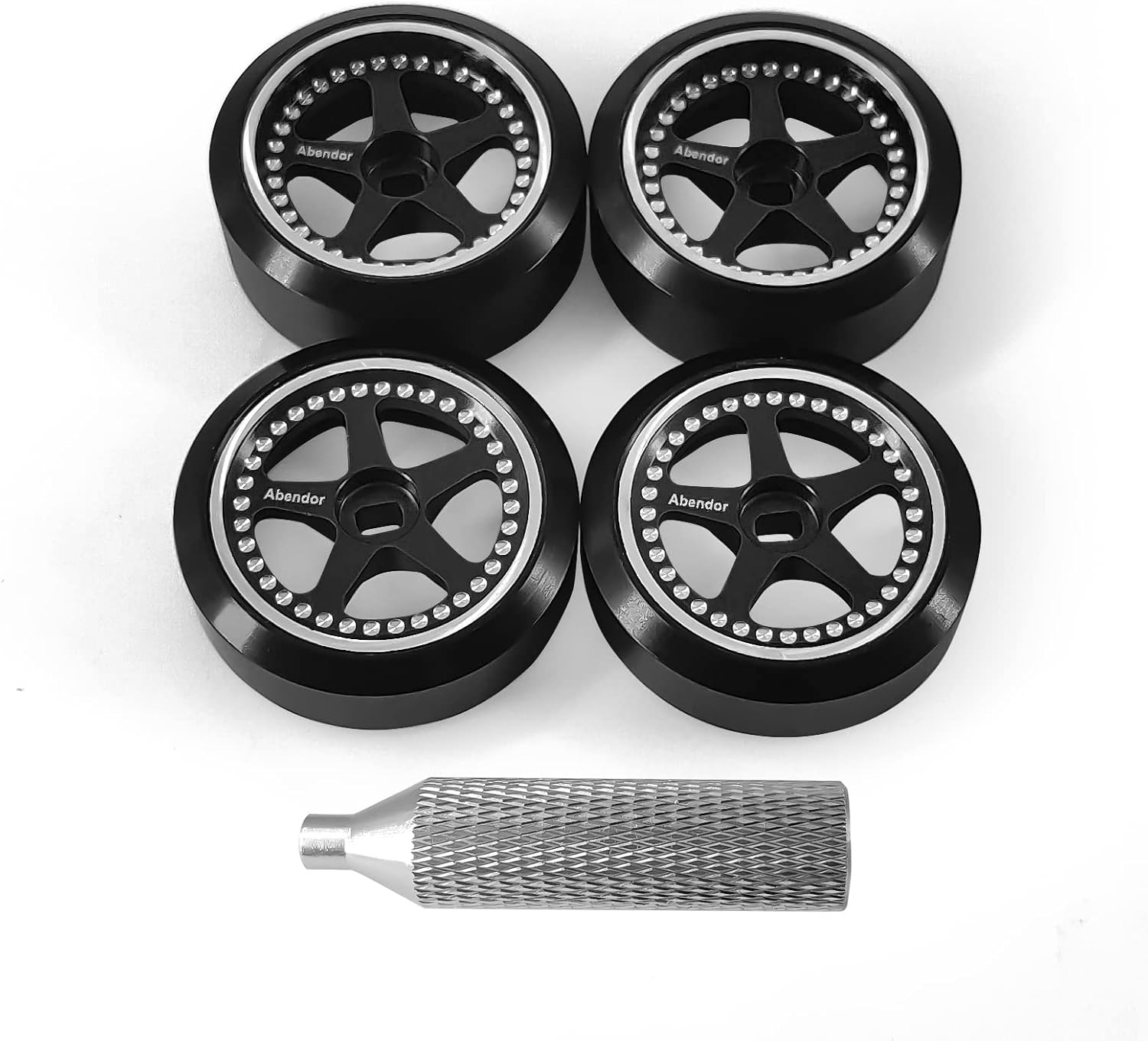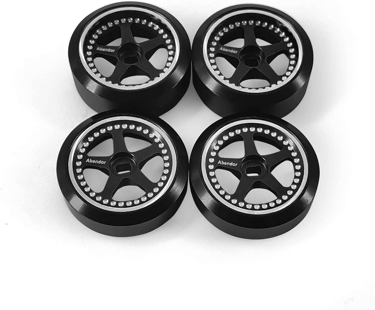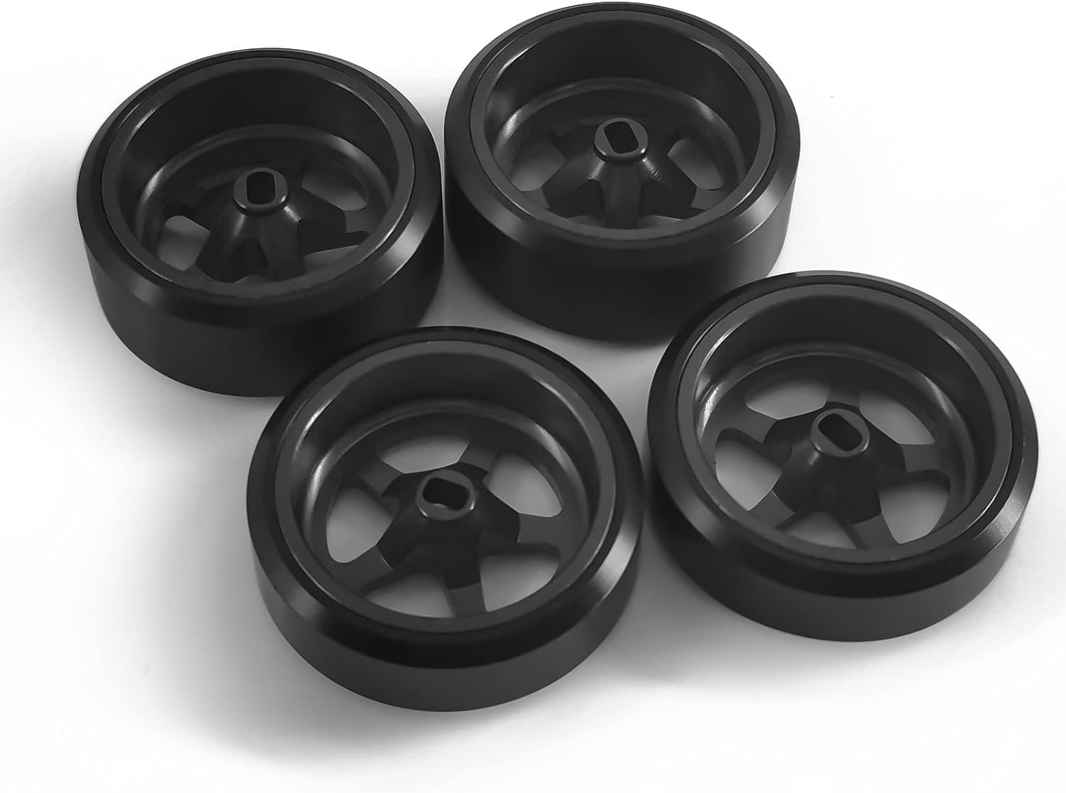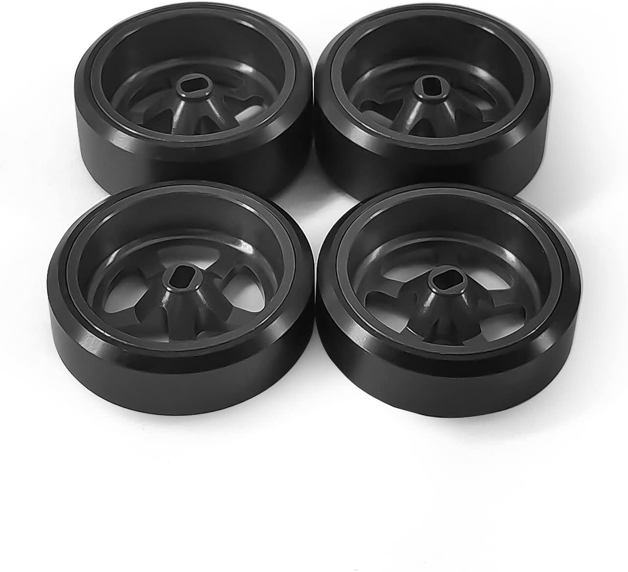 4 piezas de ruedas y neumáticos de derrape Rc para 1/28 Wltoys K969 K989 P929, ruedas de carrocería Rc de aleación con neumáticos de goma dura para 1/28 Kyosho Mini-Z Mini-Q HGD1 HGV1 (negro)