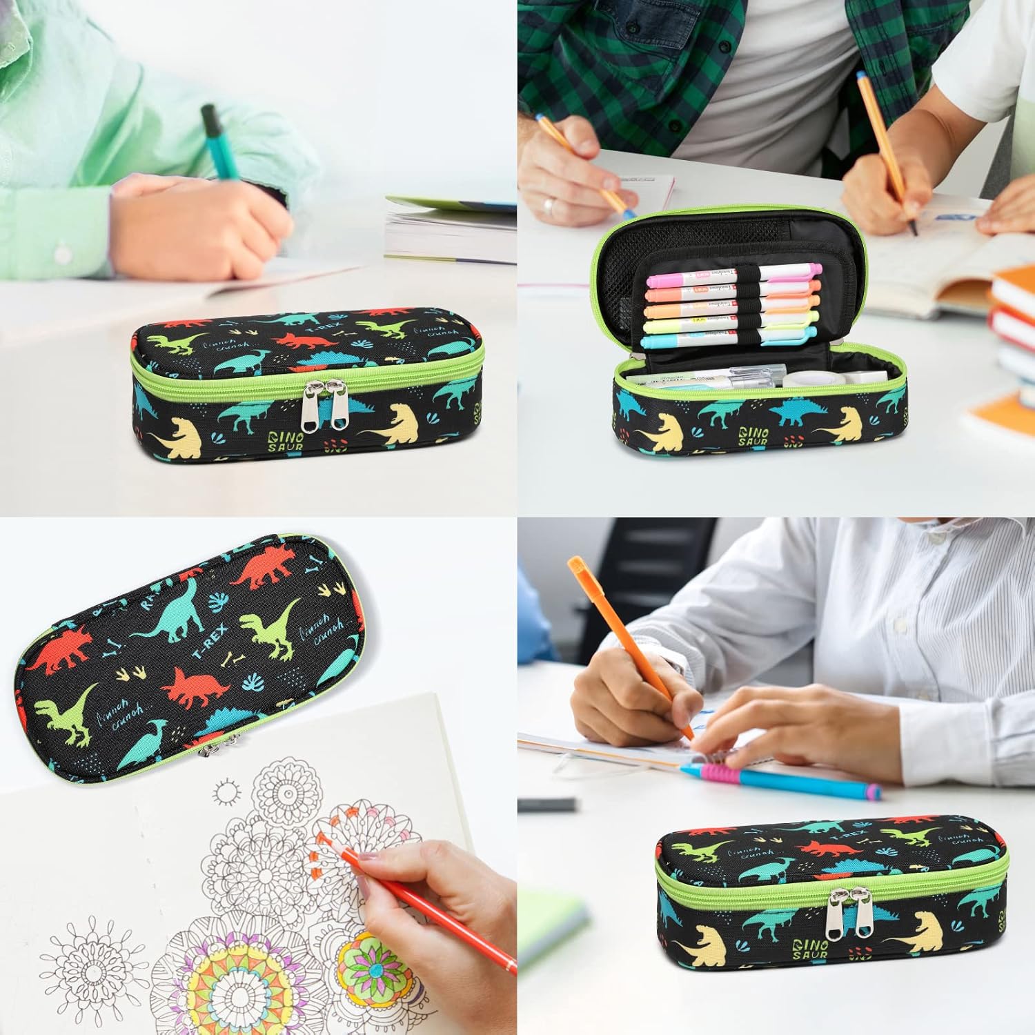 Estuche de lápiz Cambond para niños - Estuche de lápiz lindo para niños con gran capacidad para estuche de lápiz para la escuela, solo estuches de lápiz, dinosaurio negro