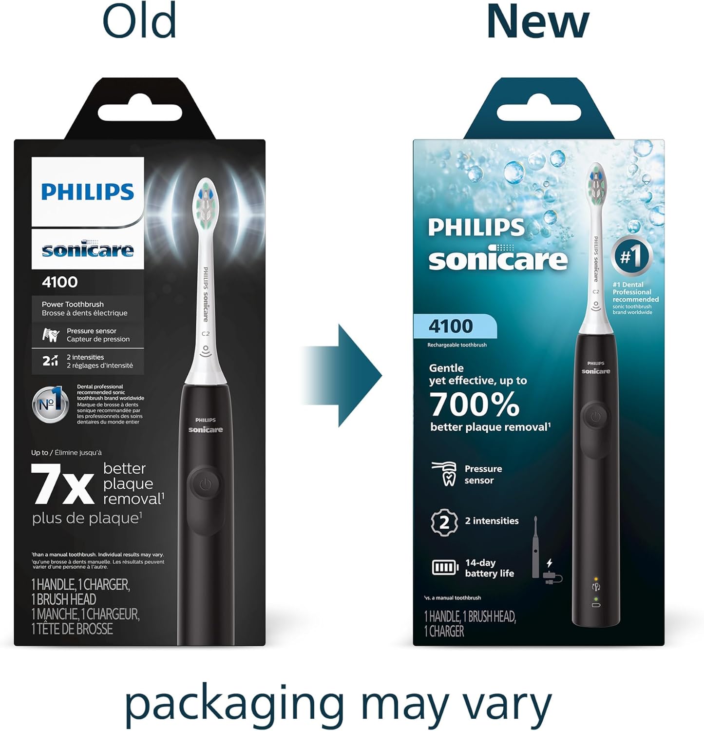 Philips Sonicare 4100 Series Electric Toothbrush - Sonic Toothbrush with Advanced Sonic Technology, Pressure Sensor, Two Intensity Settings, Smartimer & Quadpacer, Black, Model HX3681/24
