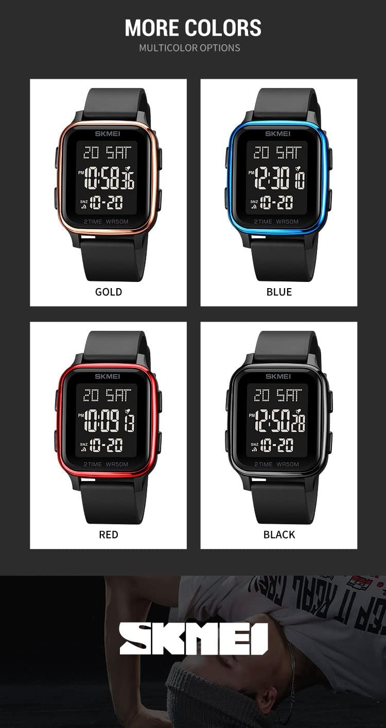 Reloj digital multifuncional casual unisex para exteriores Gosasa Classic Square Face para mujeres y hombres
