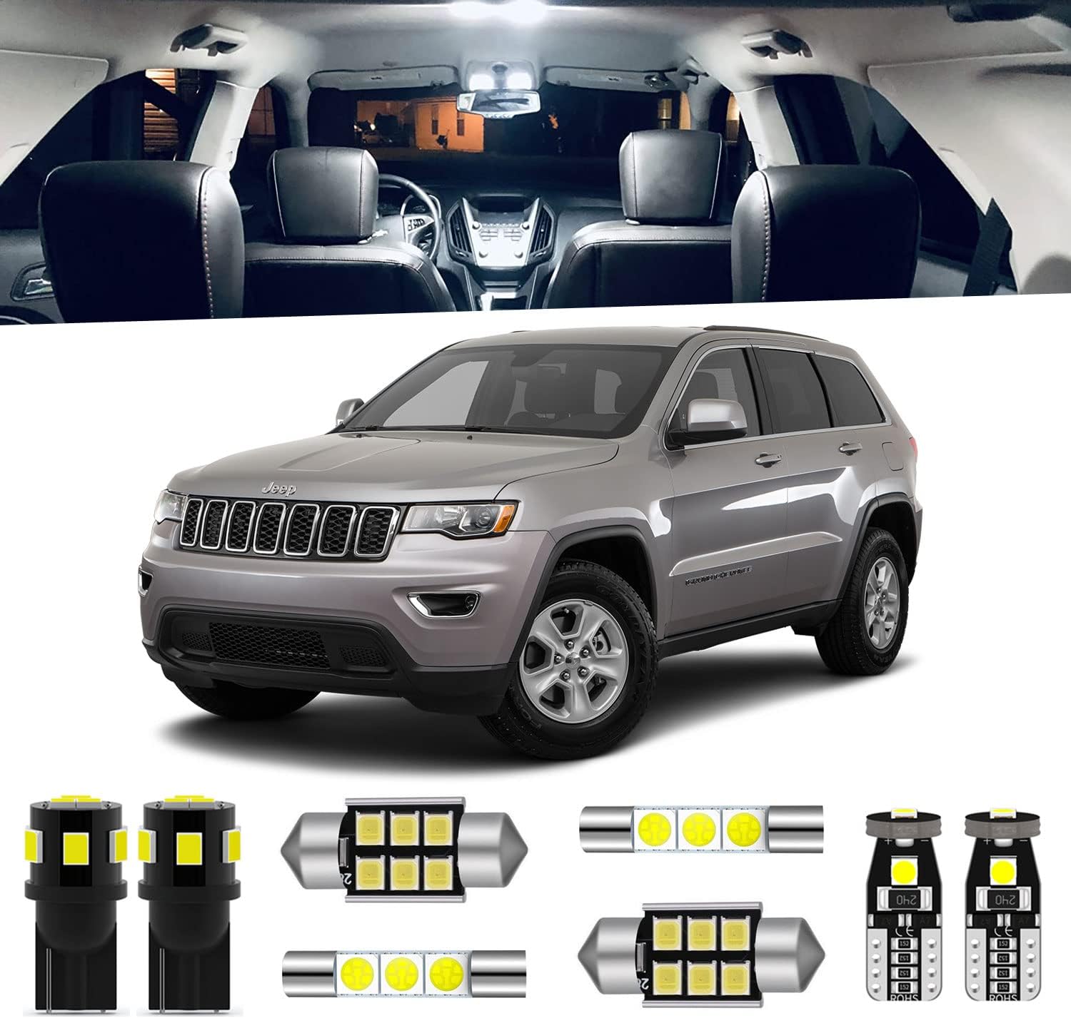 ENDPAGE 15 piezas Grand Cherokee kit de luces LED interiores para Jeep Grand Cherokee 2011 2012 2013 2014 2015 2016 2017 2018 2019 2020 blanco 6000K + luces de matrícula, herramienta de instalación