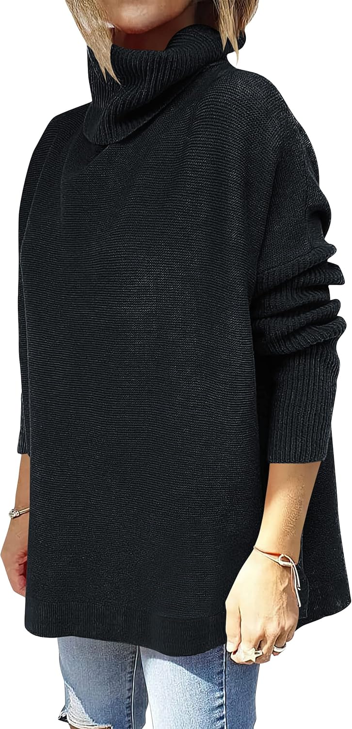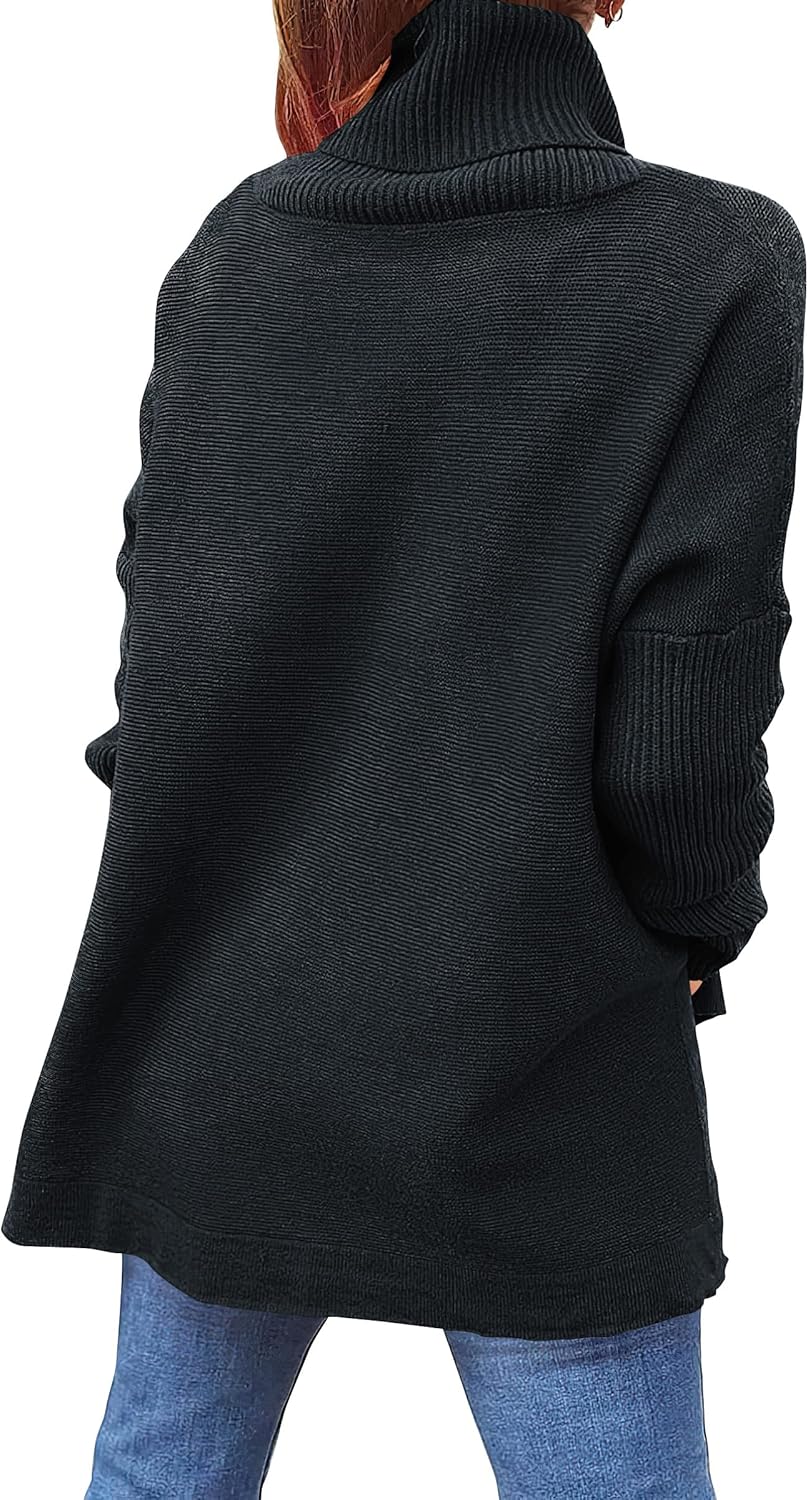 ANRABESS Women's Oversized Turtleneck Batwing Sleeve Spilt Casual Loose Knit Tunic Pullover Sweater Tops 2025 Fall Outfits