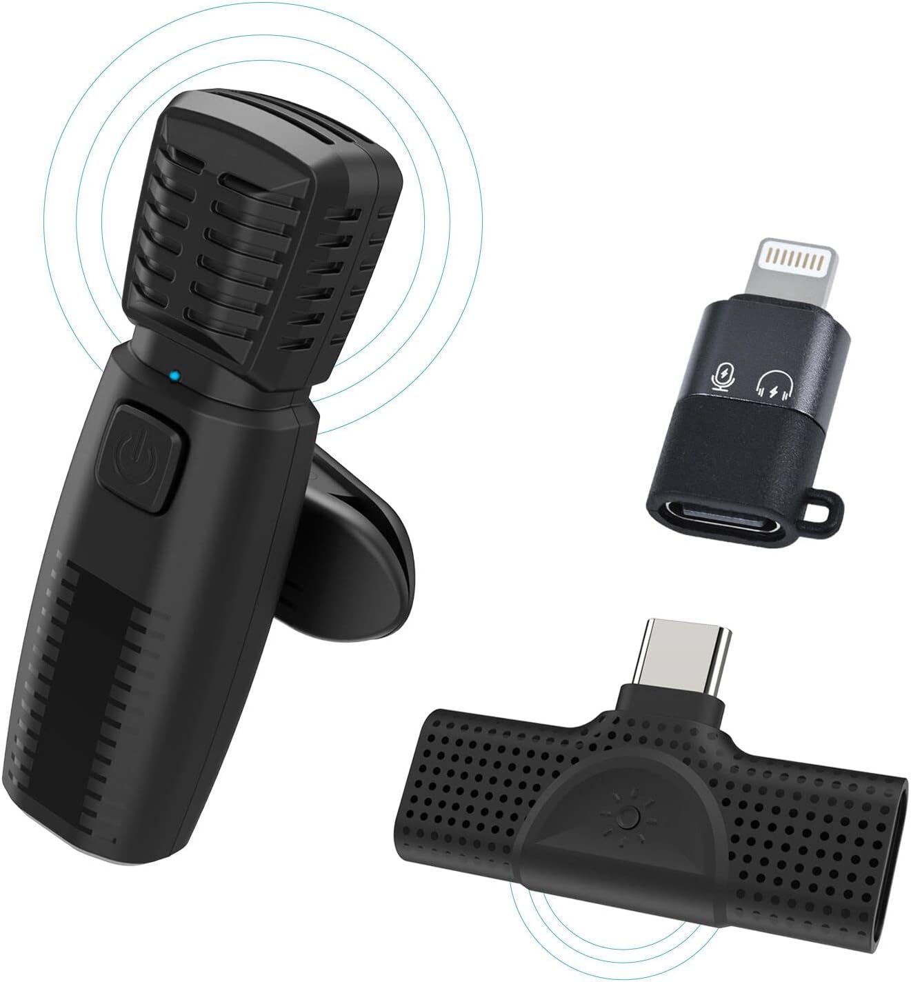 Wireless Lavalier Microphone Compatible with iPhone iPad Android Devices, Plug and Play Wireless Recording Microphone for TikTok Vlog YouTube, Noise Reduction, No App or Bluetooth Needed