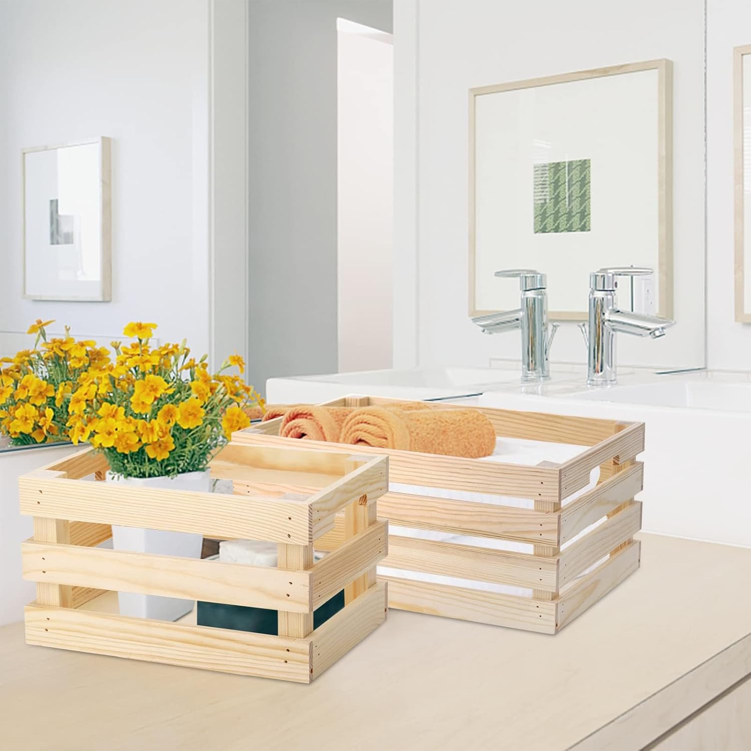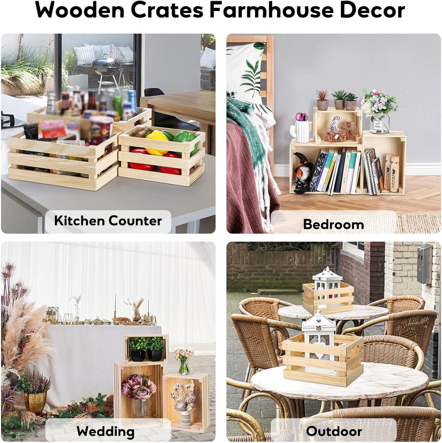 Rustic Farmhouse Feel: Made of natural pine wood, our crates for decor brings sense of vintage and primitive elegance to your home decoration. Great for decoration, storage and organization. And it is suitable for wedding decoration, party, and other celebration. The smooth surface also allows you to DIY and decorate the way you want