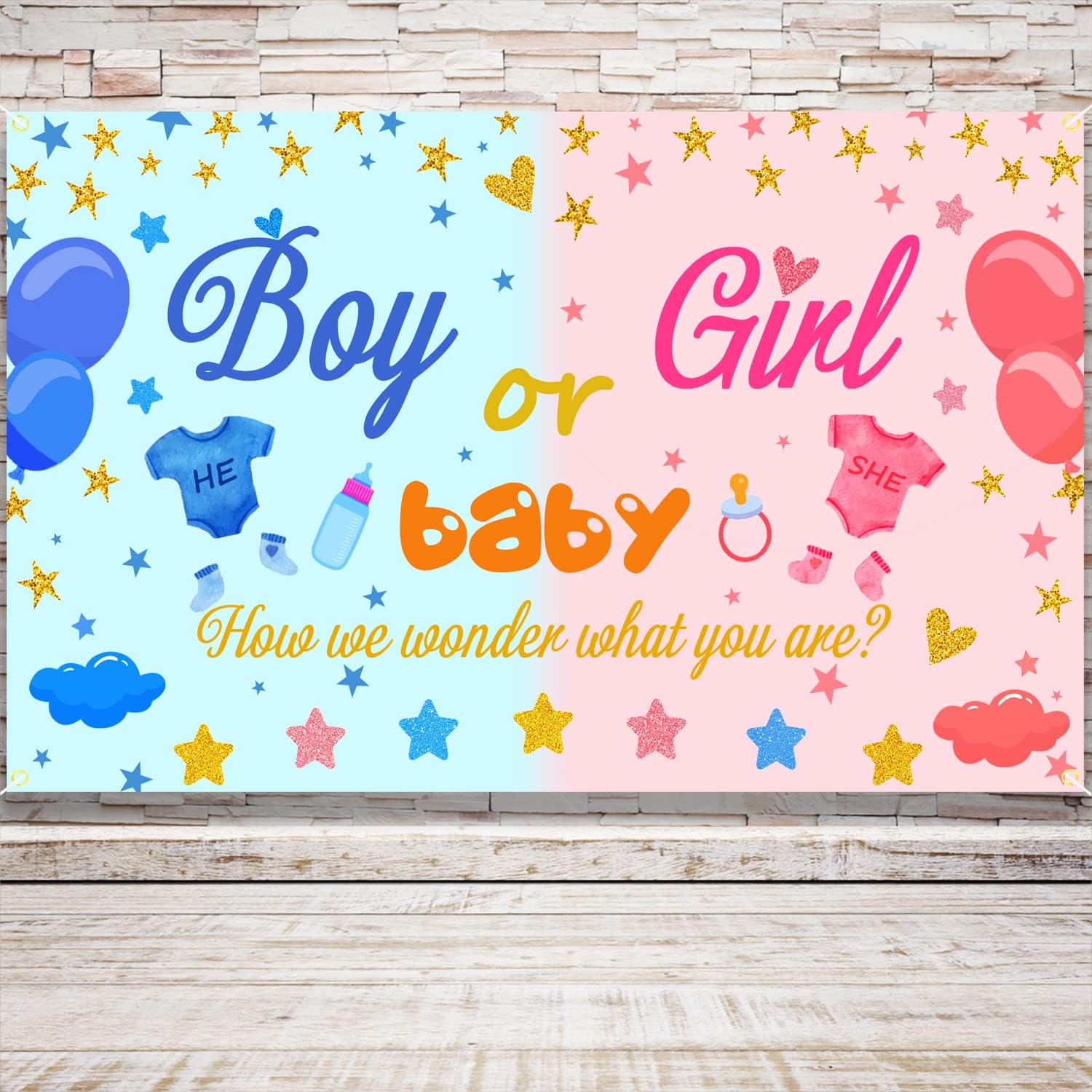 ♥ FIESTA DE REVELACIÓN DE GÉNERO: bonitas decoraciones de revelación de género de color rosa y azul, perfectas para decoraciones de fiestas con revelación de género para niños o niñas, artículos de fiesta con revelación de género para él o ella, pancarta de telón de fondo para niños o niñas, aquí para el letrero de Sex Yard, centro de mesa de fiesta con revelación de género con temática de estrellas centelleantes, fotomatón de fotografía de fondo para niños o niñas.