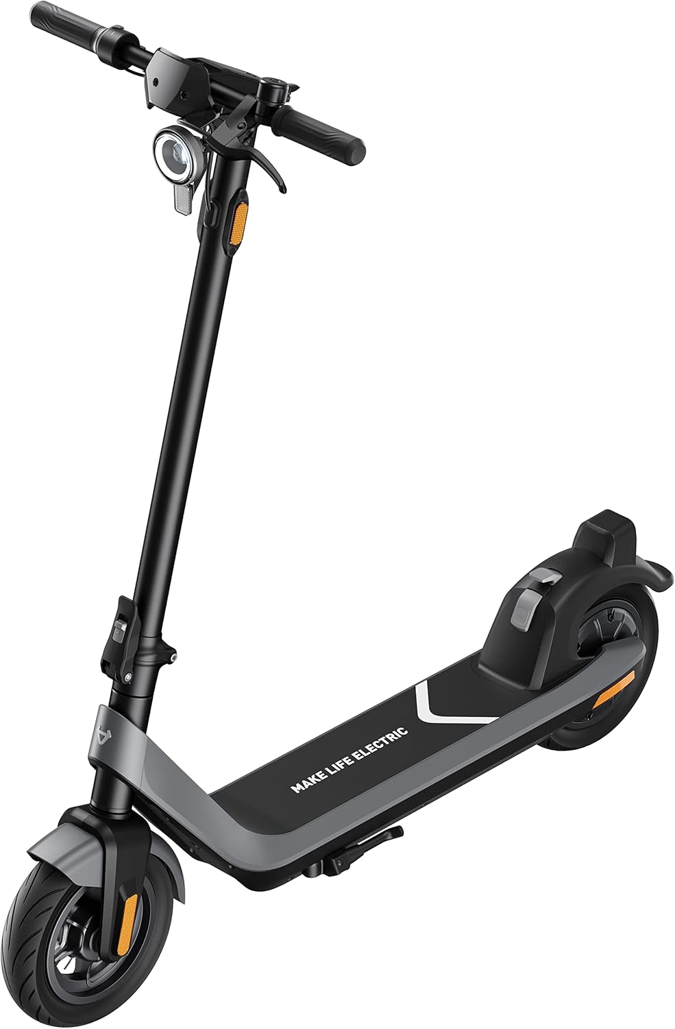 【Stay Comfortable & Safe】Improved 10-inch Unstoppable Tubeless Tires deliver excellent shock absorption while a dual braking system (front drum brake and rear electric brake) provides safer and more stable stopping. For your riding saftey, the KQi2 Pro features a high-powered Halo headlight, braking lights, and a mechanical bell.