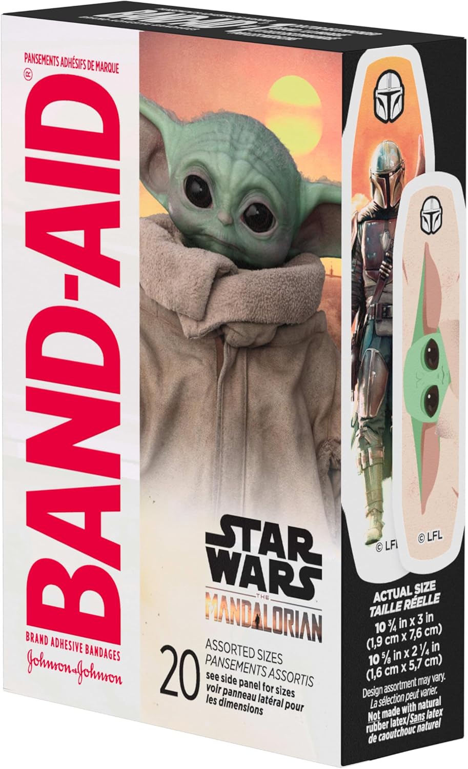 Band-Aid Brand Adhesive Bandages for Minor Cuts & Scrapes, Wound Care Featuring Star Wars The Mandalorian Characters for Kids and Toddlers, Assorted Sizes 20 ct