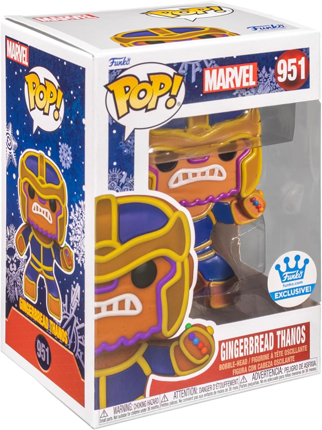 POP MARVEL: From Marvel Comics, it's Gingerbread Thanos as a stylized POP vinyl figure from Funko!