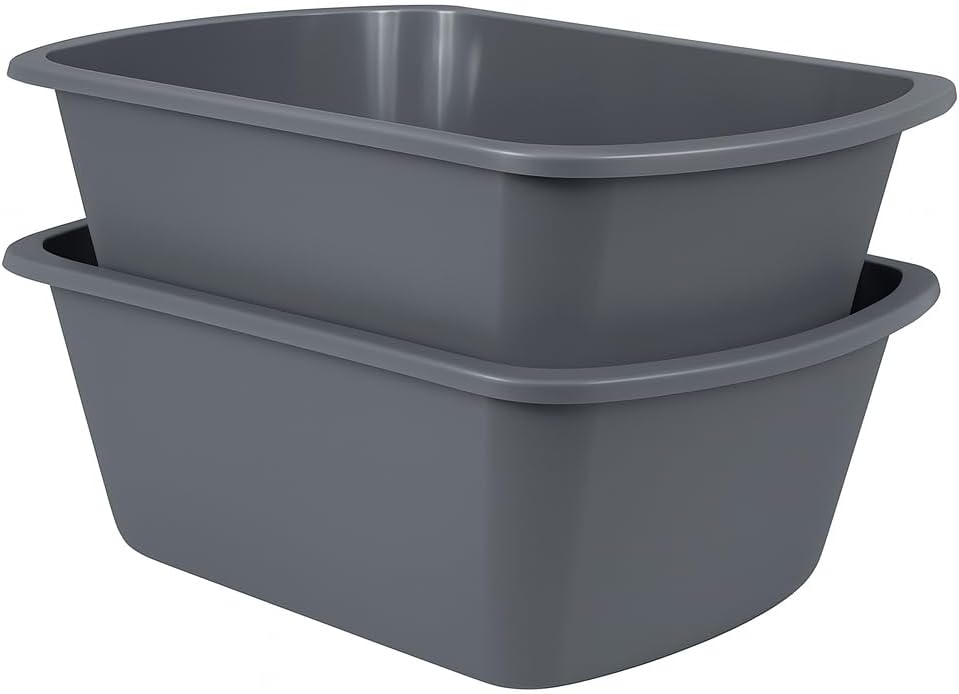 Vakly Rectangular Wash Basins (13.25" x 10" x 5") – Lightweight, portable plastic tubs designed for repeated daily use as a wash basin, soaking pan, dish pan, or utility basin. Perfect for kitchens, bathrooms, laundry rooms, RVs, dorms, and bedside care.