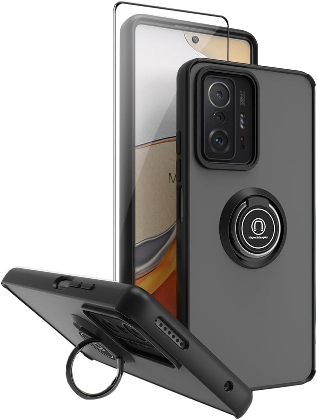 QUIETIP Case Compatible with Xiaomi 11T & 11T Pro with Screen Protector,TPU + Hard PC Shockproof Magnetic Ring Car Mount Stand Phone Cover,Black