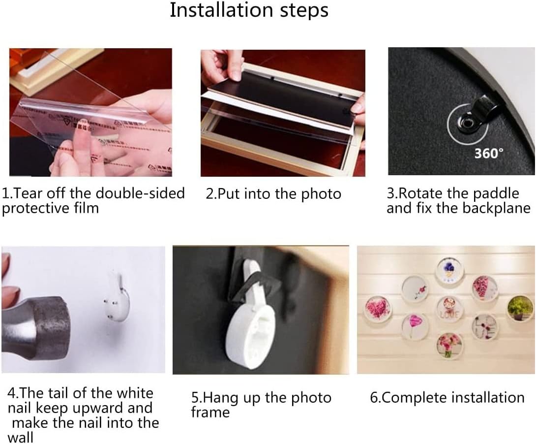 Each frame is fitted with plexiglass, backing board and picture hanger, also come with a non-trace nail hook. Please tear off the protective film before using.