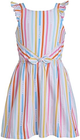 Nautica Girls' Printed Flutter Dress, Sleeveless with Ruffled Shoulders & Cinched Waist