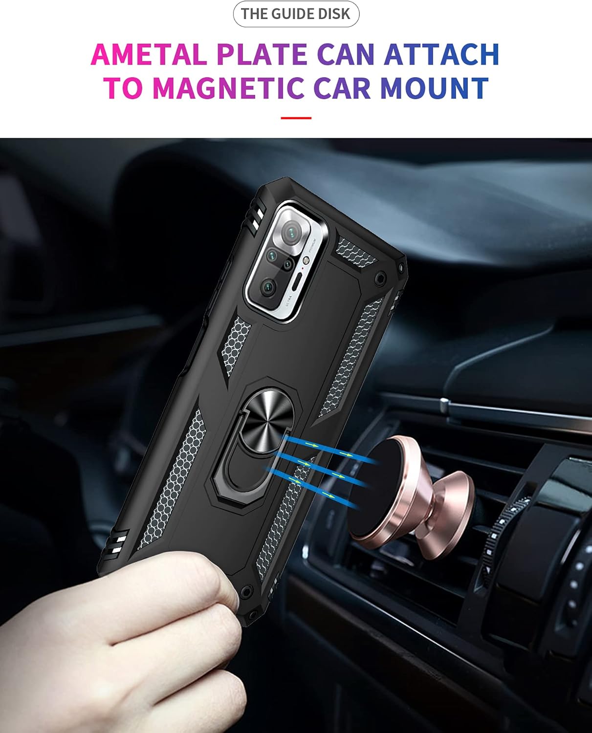 【Multi Function】360 Degree Rotating Metal Ring Kickstand of Xiaomi Redmi Note 10 pro supports to work with magnetic car mountand .The Ring at back cover can also work as kickstand to hold up your Xiaomi Redmi Note 10 pro Max Phone while you are warching movie or video.