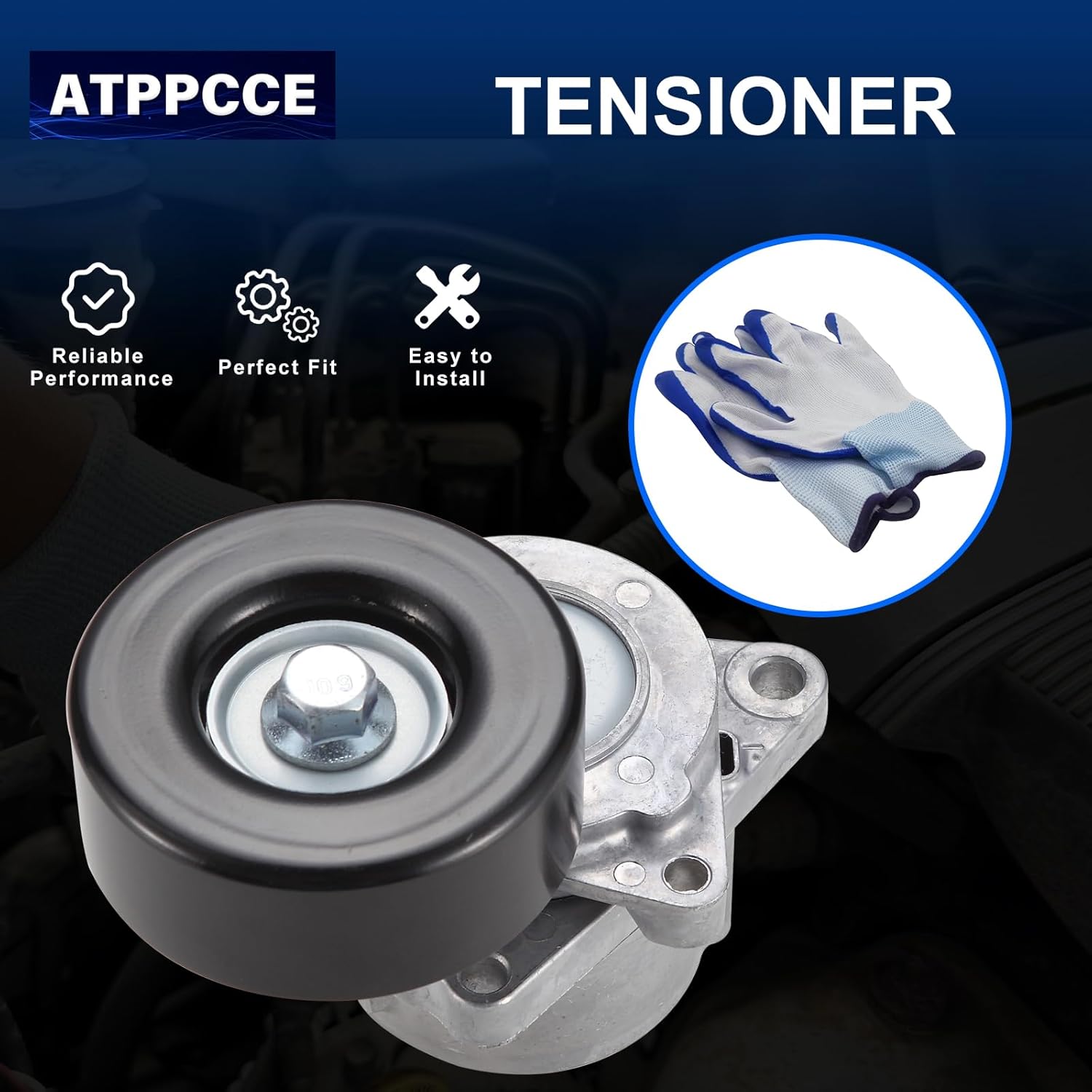 The replacement automatic serpentine belt tensioner pulley assembly transports power to the alternator,power steering pump,air conditioning and keeps it running smoothly and effectively.It is designed for vehicles that needs an automatic belt tensioner.The torsional round spring design provides consistent tension for maximum durability