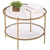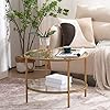 VINGLI 25.6" Round Gold Coffee Tables for Living Room, 2-Tier Glass Top Coffee Table with Storage Clear Coffee, Simple & Modern Center Table for Small Space