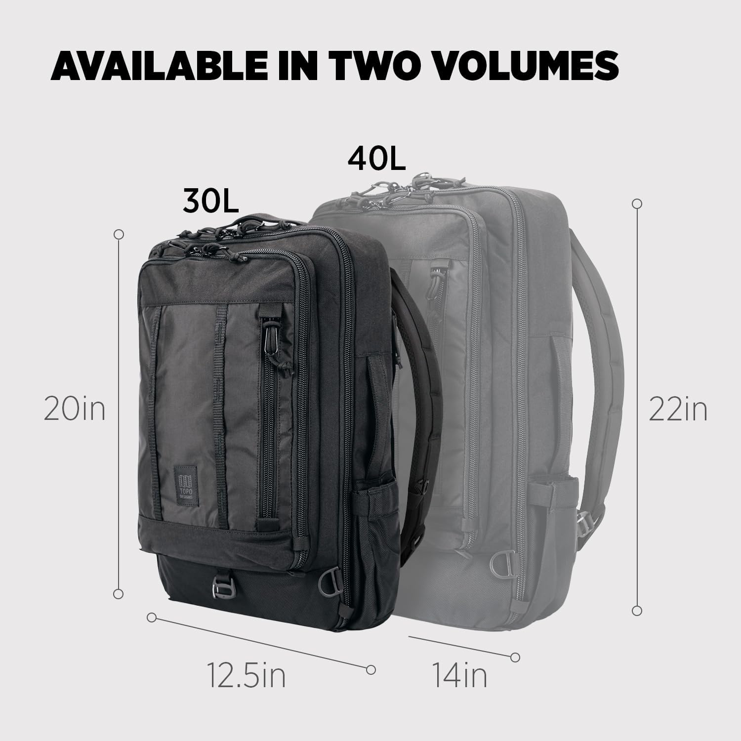 Topo Designs Global Travel Bag 30-40 Liter - Carry-on Compliant Versatile Pack, 3 Carry Options, External Laptop Sleeve (Original, 30L, Black)