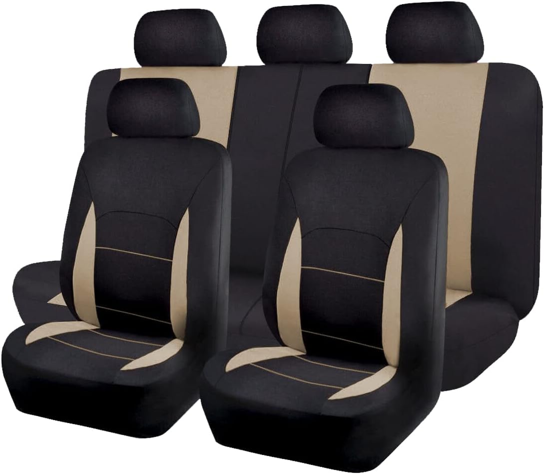 Flying Banner Car Seat Covers Set Beige Tan Front Seats Rear Bench Polyester car seat Protectors Easy installations Rear Bench Split Classic Man Lady Truck