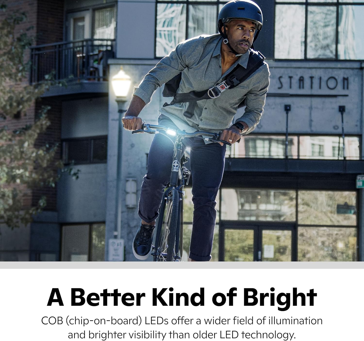 ULTRA-BRIGHT COB LED TECH: This headlight and taillight set features chip-on-board (COB) lighting, placing LEDs closer together for brighter visibility – helping you stand out in traffic and low-light conditions.
