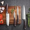 【Ergonomic Pakkawood Handle】 PAUDIN uses strong and durable Pakkawood for the handle of the knife sets to prevent it from cracking, splitting and discoloring. And the ergonomically designed handle gives you superior comfort and a non-slip grip for better control and balance. Easy to swing the chef knives without getting tired.
