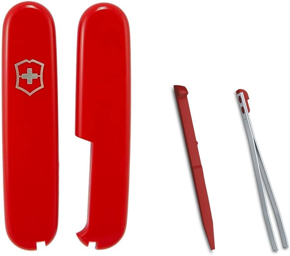 - Genuine Victorinox replacement scales - Suitable only for 91mm Victorinox Swiss Army - Include slots for toothpick and tweezers - Cutout for screwdriver/corkscrew tool - Supplied as 1 pair (front and back handles), 1x toothpick and 1x tweezers - The handles have beveled fixing points - they require carefully applied pressure to fit them tightly - push fitting them by hand is usually not adequate - Care must be taken when fitting. We do not accept liability for damage to handles or tools during fitting. - PLEASE NOTE: these are the replacement handles only. The Swiss army tools are NOT included.