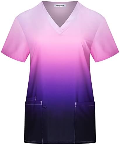 Minty Mint Women's Stretch Printed V-Neck Medical Scrub Top