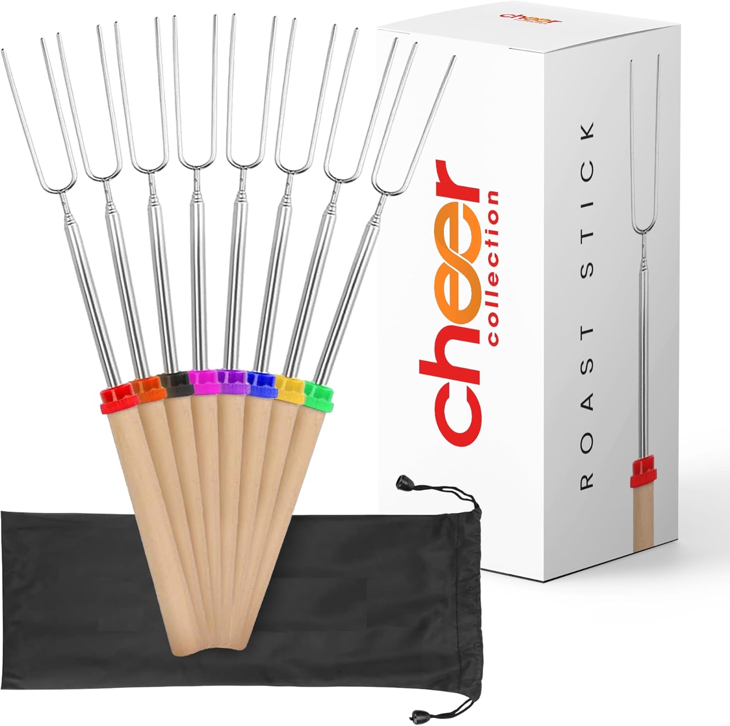 Cheer Collection Marshmallow Roasting Sticks - Set of 8 Extra-Long Smores Sticks for Fire Pit, Extendable Roasting Sticks for Campfire, Smores Kit for Fire Pit & Camping Essentials with Storage Bag