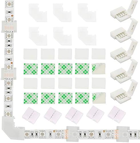 LED Connectors Kit,10mm 4 Pin 5050 RGB LED Light Strip Connectors,Includes 6 L Shape Connectors,10 Solderless Light Strip Connectors,20 Strip Light Mounting Clips Self-Adhesive Type (3-Kit)