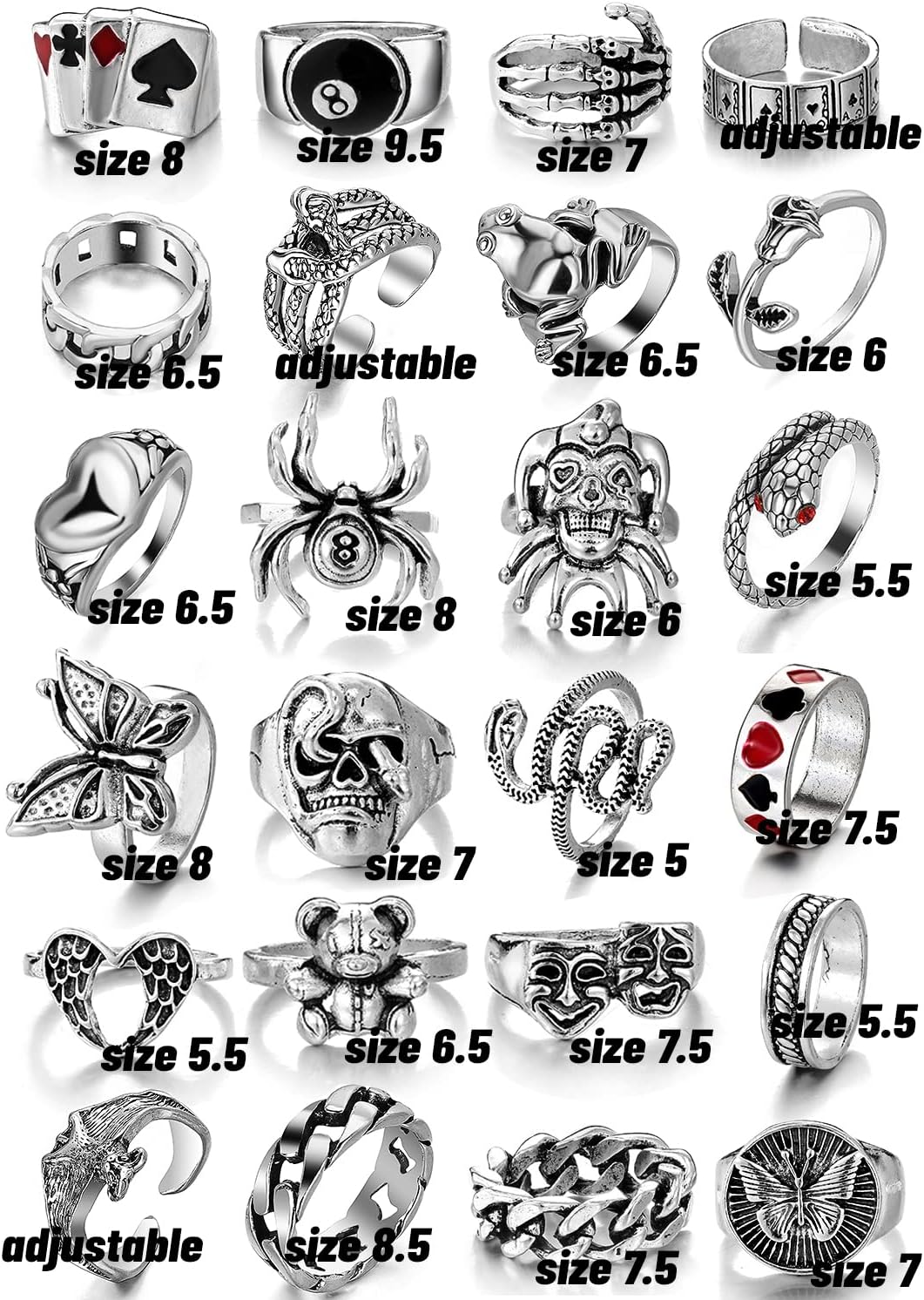 Juego de anillos de nudillos plateados vintage KISS WIFE para mujeres y niñas, joyas occidentales, anillos estéticos, anillo midi bohemio a granel, paquete de anillos apilables con cristal de serpiente turquesa, Cool Grunge Emo Y2K, regalo para ella