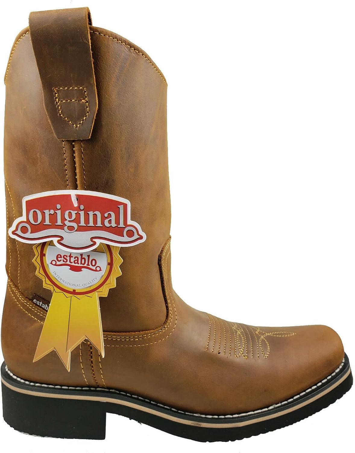 Men's Work Boots Establo Genuine Crazy Leather Square Toe Cut: Leather Lining: Textile Sole: Synthetic Square Toe Made in Mexico Botas EStablo hechas en Guadalajara Mexico