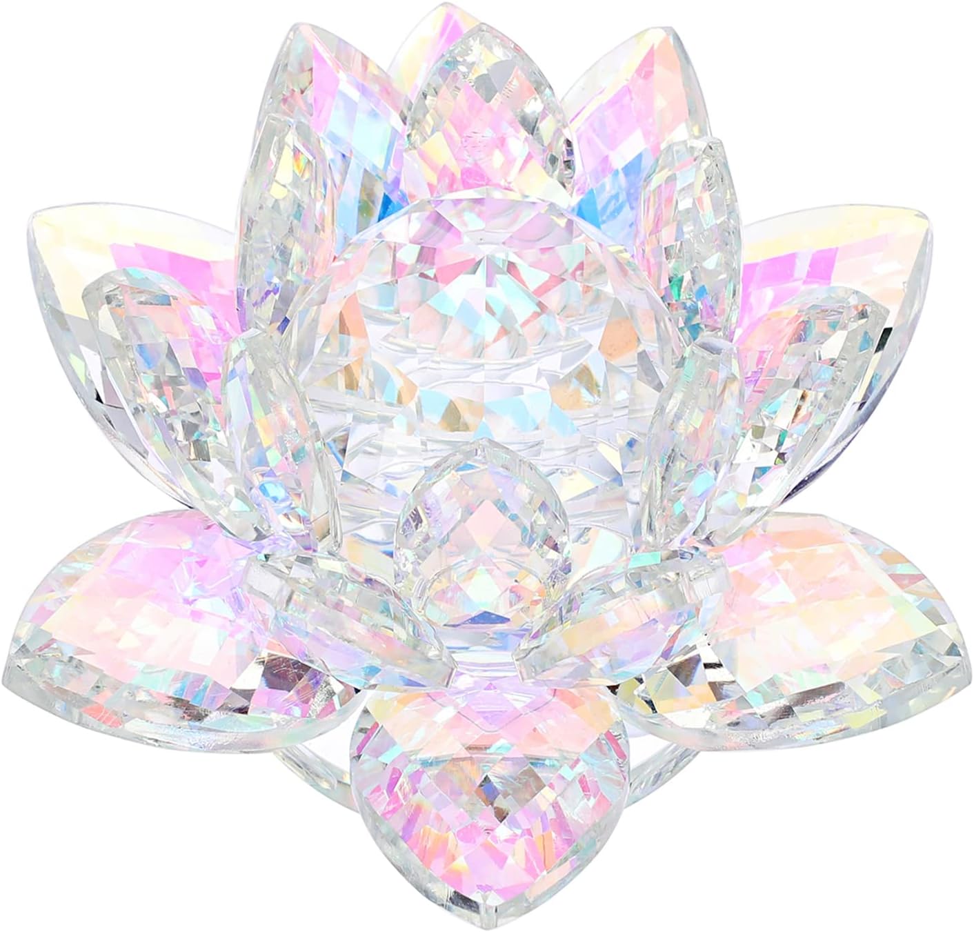 Made of colorful crystal material, this sparkly lotus figurine is durable and dust-proof, each lotus petal will glitter like diamond and catch / reflect sunlight when illuminating it directly. (AB color crystal material will reflect different color under light!)