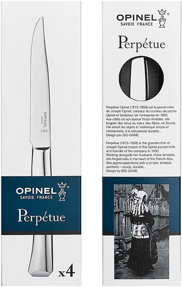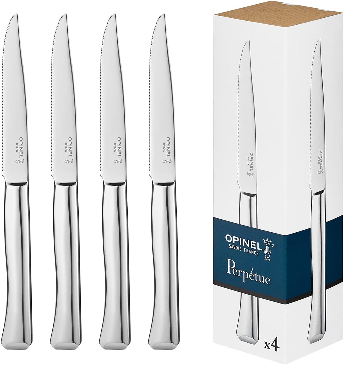 Opinel Perpétue Flatware Collection, Timeless and Elegant Stainless Steel Construction, Dishwasher Safe, Designed in France, Made in Portugal (4 Piece Knife Set)