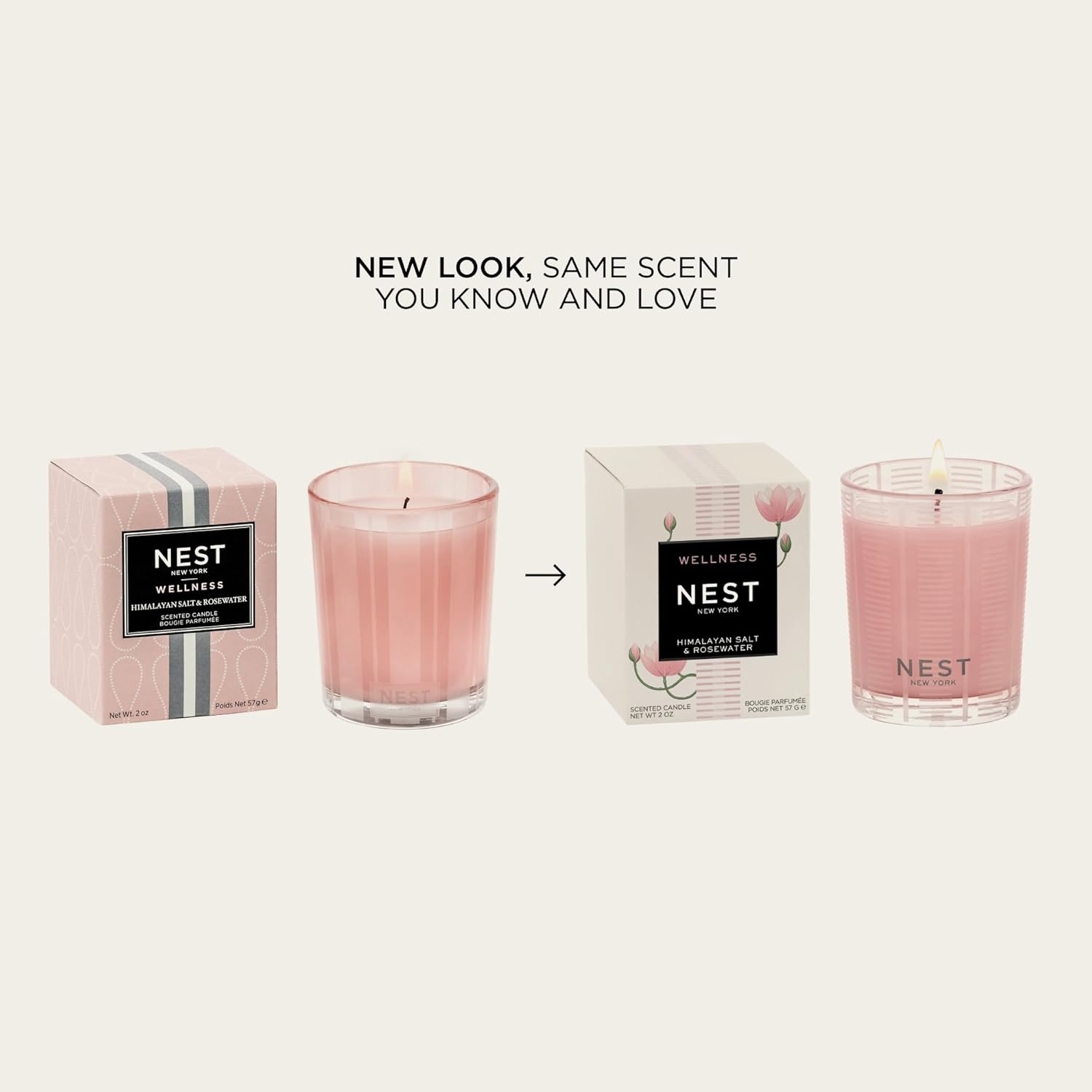 NEST New York Scented Votive Candle, Himalayan Salt & Rosewater - 2 oz - Up to 28-Hour Burn Time - Reusable Glass Vessel