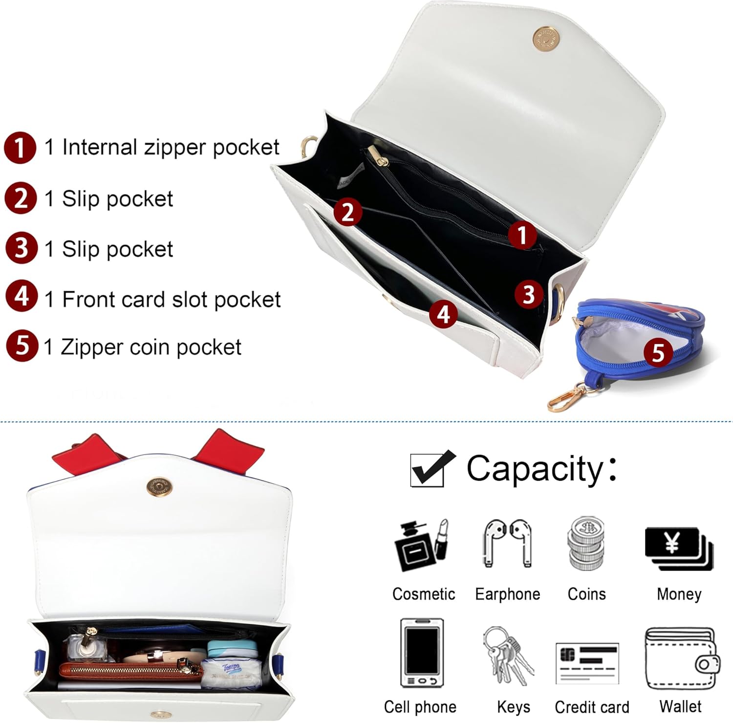 Sunwel Fashion Kawaii Anime Cosplay Purse with Bow Stone Chain Shoulder Crossbody Bag (blue)