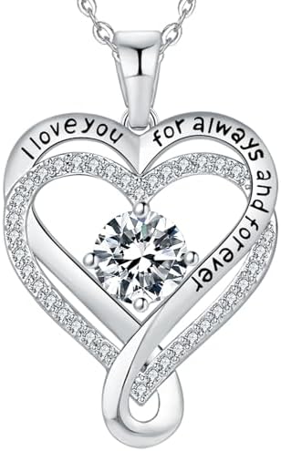 Jewelry for Women Wife Infinity Heart Birthstone I Love You Necklace S925 Anniversary Women Necklaces for Her Wife Birthday Gift Ideas, Birthday Present for Girlfriend Mom Daughter Sterling Silver