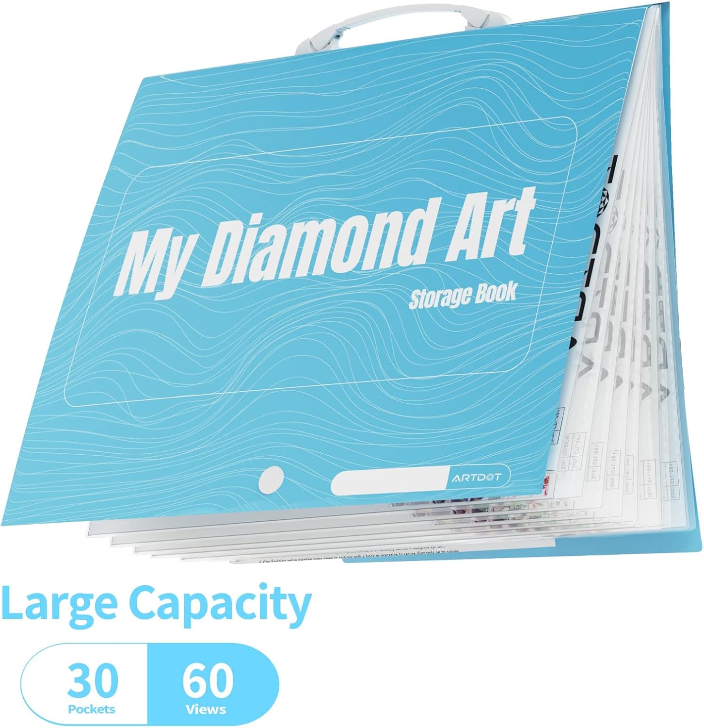ARTDOT Libro de Almacenamiento A3 para Carpeta de Arte Diamante con Accesorios para Pintura Diamante con 30 Protectores de Manga (16.9x12.4 pulgadas)
