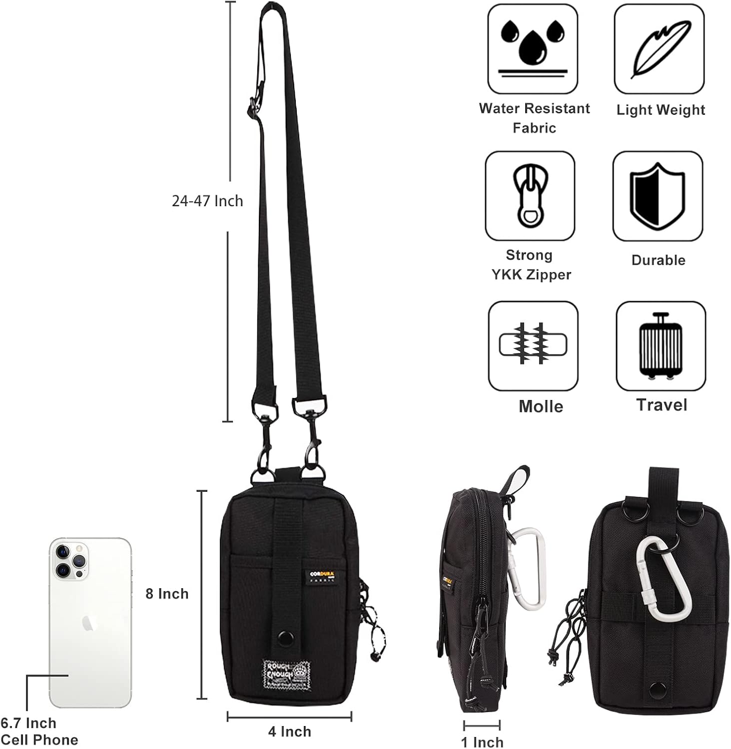 Adventure-Ready Phone Sling: The carabiner and keychain add functionality for outdoor use. Padded back panel ensures comfort during extended wear. Combines cell phone bag convenience with tactical storage capacity, ideal for commutes, travel or hiking