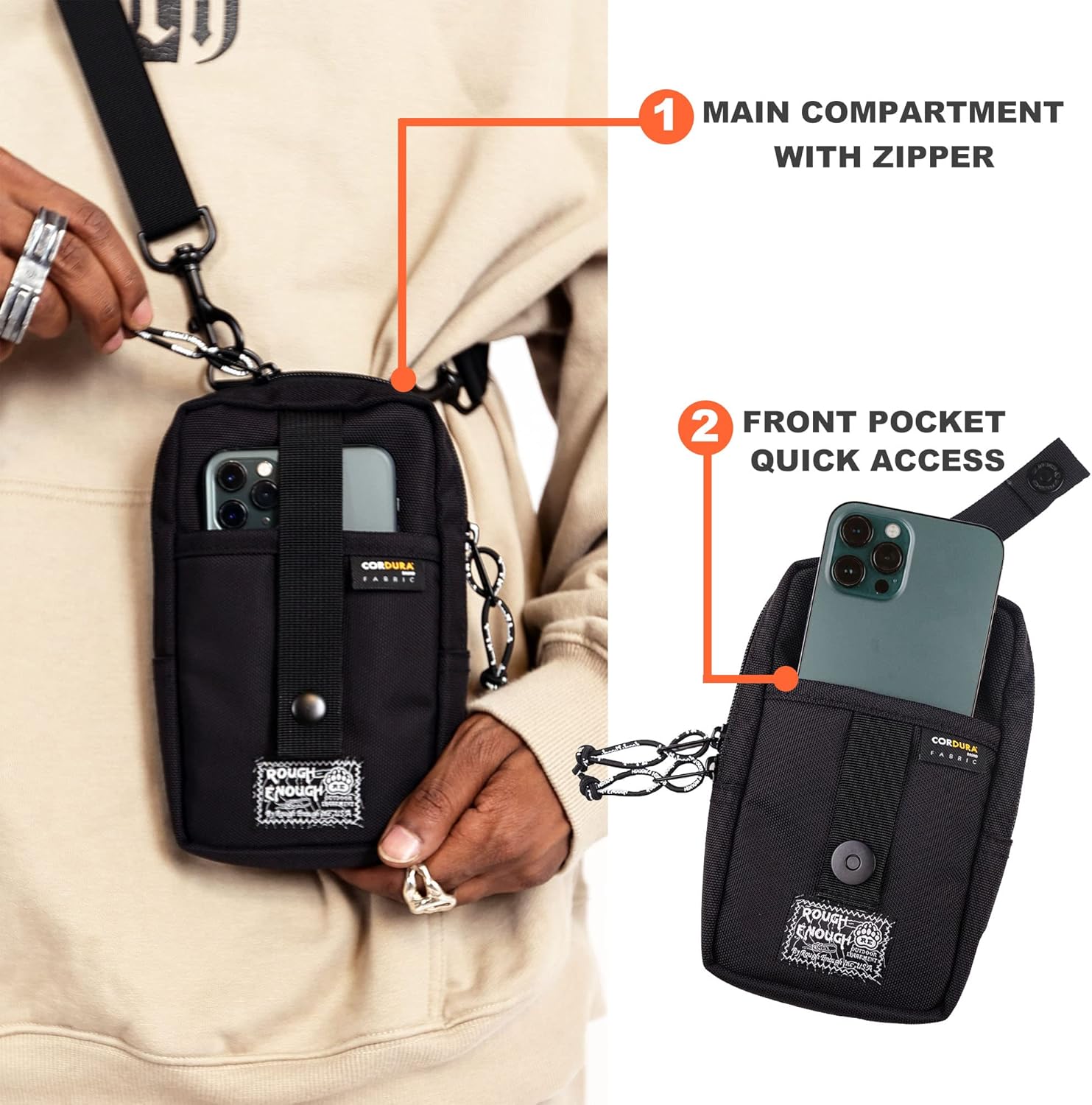 Rough Enough Man Purse Small Crossbody Bag for Men Cell Phone Shoulder Sling Tactical Pouch Black