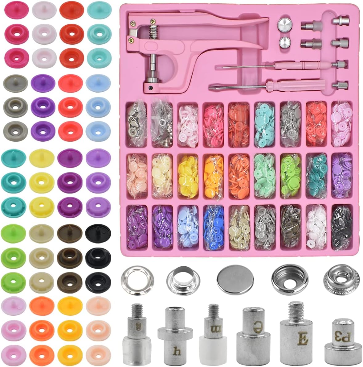 Lo que obtienes: obtendrás 300 juegos de botones de broche T5 de plástico, 25 botones de broche de plástico de colores arcoíris cada 10 juegos y 10 juegos de botones de broche de metal plateado y 40 arandelas, pinzas, destornillador Aswl, mango extra largo, base T3 T5 T8, cabezal de presión, cabezal de presión, cabezal de punzón. Una gran cantidad y colores vibrantes de botones de broche satisfarán tus demandas en costura y proyectos de bricolaje.