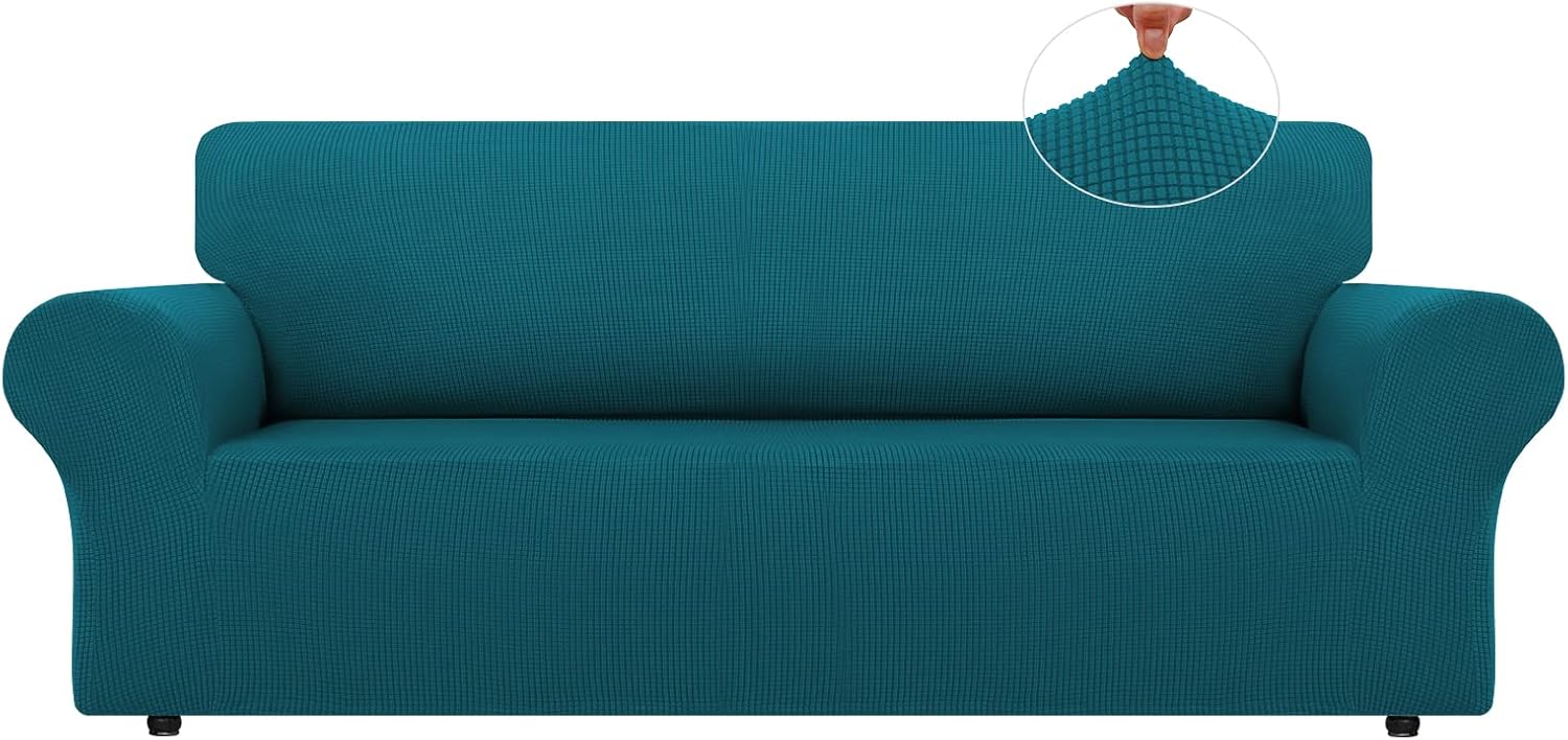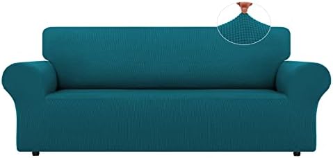 LURKA Stretch Sofa Slipcovers 1 Piece Couch Covers for 3 Cushion Couch Sofa Furniture Protector Full Sofa Covers with Elastic Bottom for Kids and Dog (Large, Peacockblue)