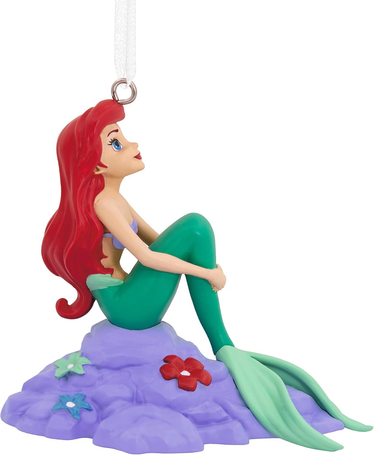 Make Ariel a part of your holiday decor with this enchanting Christmas tree ornament. The charming decoration of the beloved mermaid princess sitting on a rock with her sea-green tail and iconic flowing red hair will delight any fan of the classic Disney movie "The Little Mermaid." Hallmark Ornaments celebrate characters and personalities from contemporary and classic movies, TV shows, toys, entertainment and sports. Each festive and collectible ornament is perfect for sharing with family and friends. ©Disney