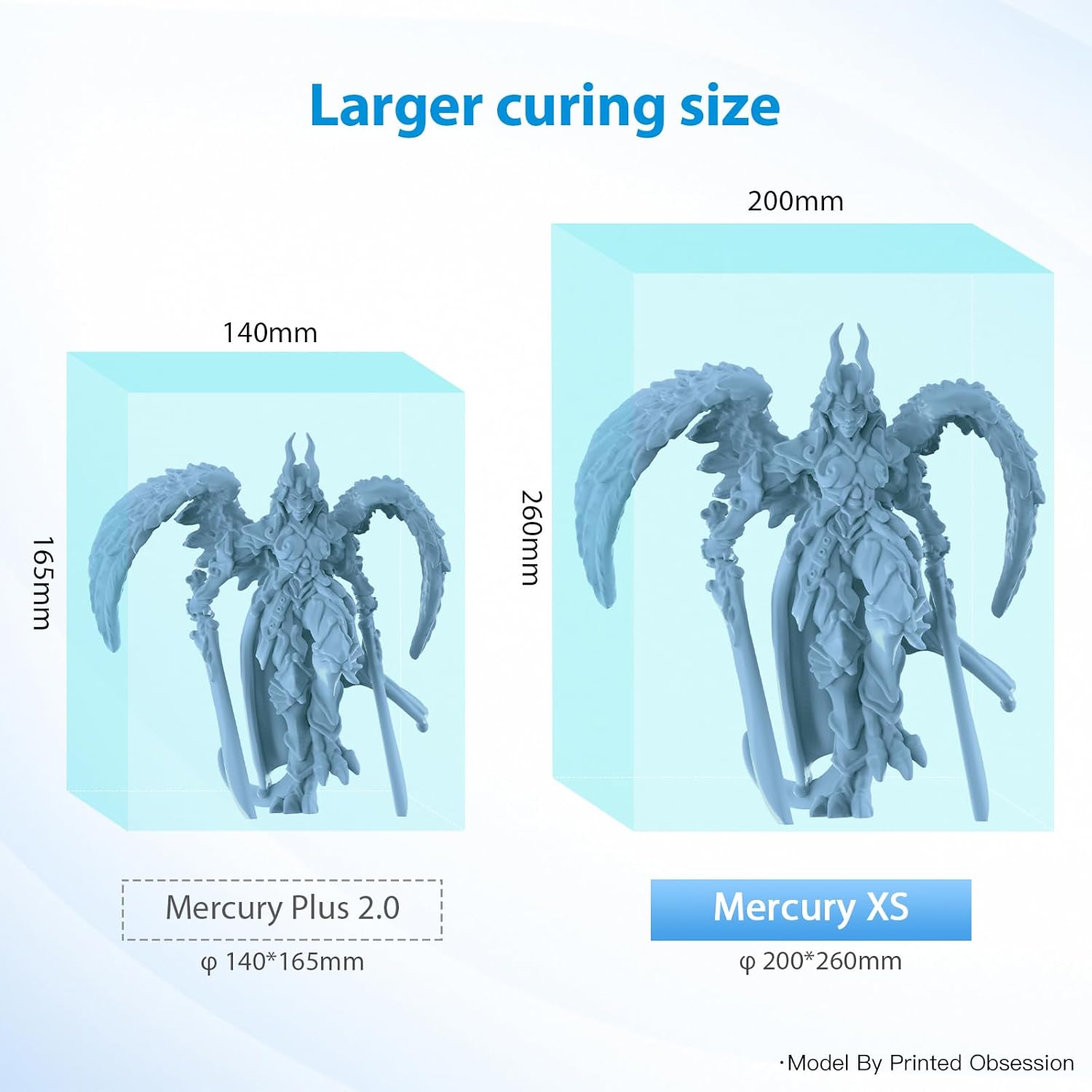 【Cleaning Modes】 With the newly added hand-held UV curing lamp, the model can be cured in all directions. Curing machine is equipped with two L-shaped light strips, each with 14 built-in UV lamp beads. The curing platform can be rotated 360°, and the base light strip also contains 4 lamp beads. The maximum curing size is: Φ200mm*260mm