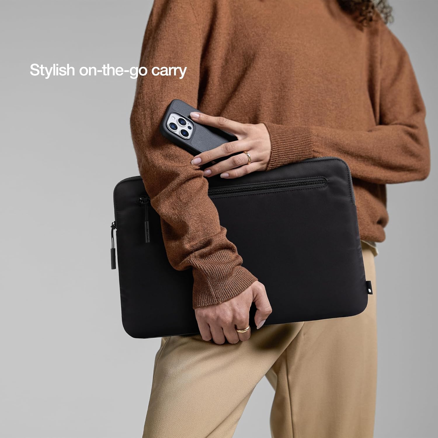 Incase Compact Laptop Sleeve with Flight Nylon - 14-inch MacBook/Laptop & iPad/Tablet Sleeve - Faux Fur Lining, Lightweight, Durable, Weather Resistant, Slip Pocket for Accessories - Black