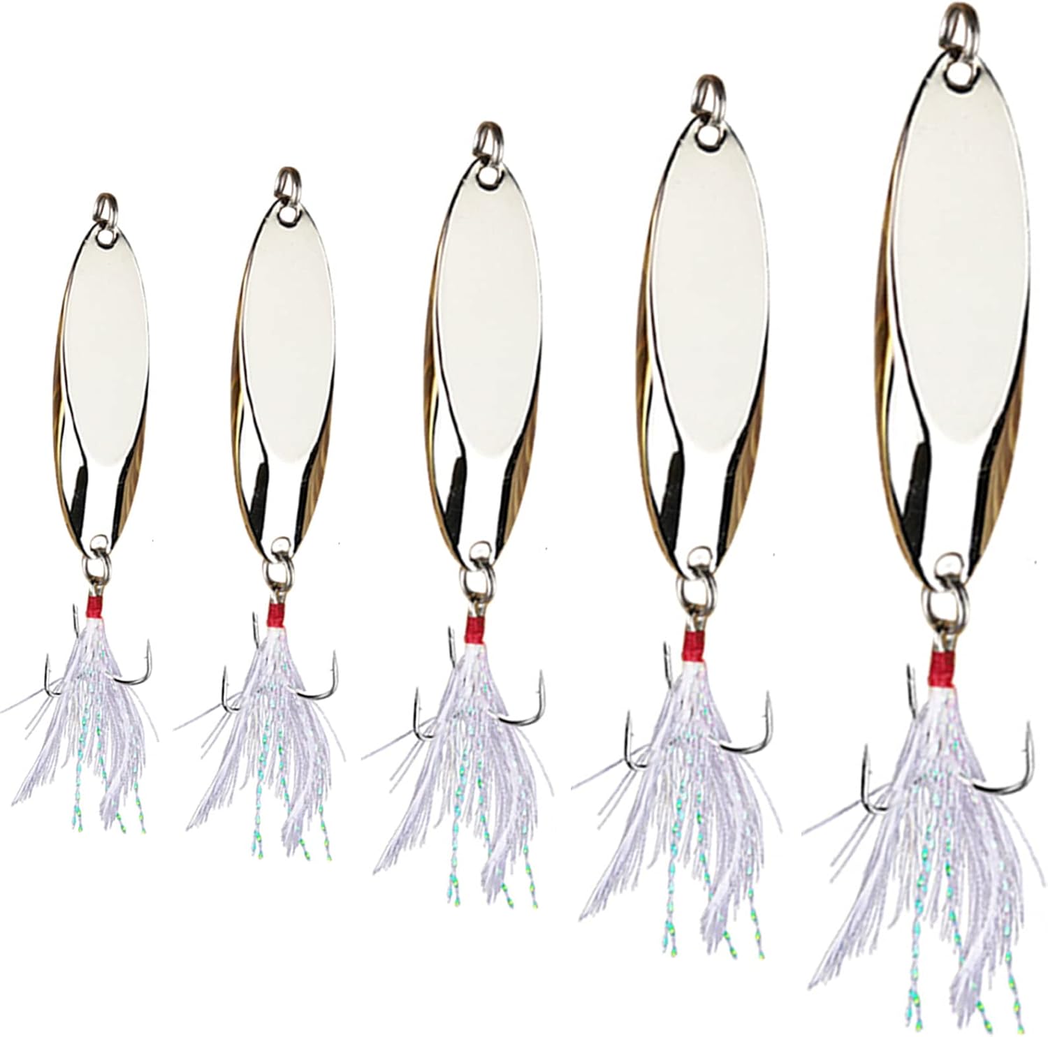 ELECTROPLATING PROCESS: The spoon lures for fishing lures saltwater has a mirror plating process, good reflection effect, with attractive laser feathers on the tail, high fish attracting ability.