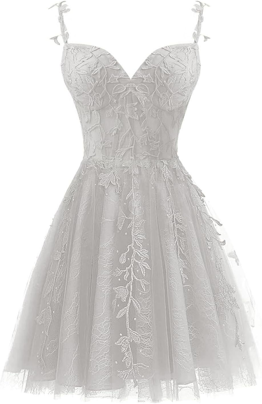Vestido corto de fiesta de tul para adolescentes 2023 con tirantes finos y apliques de encaje, mini vestido de cóctel